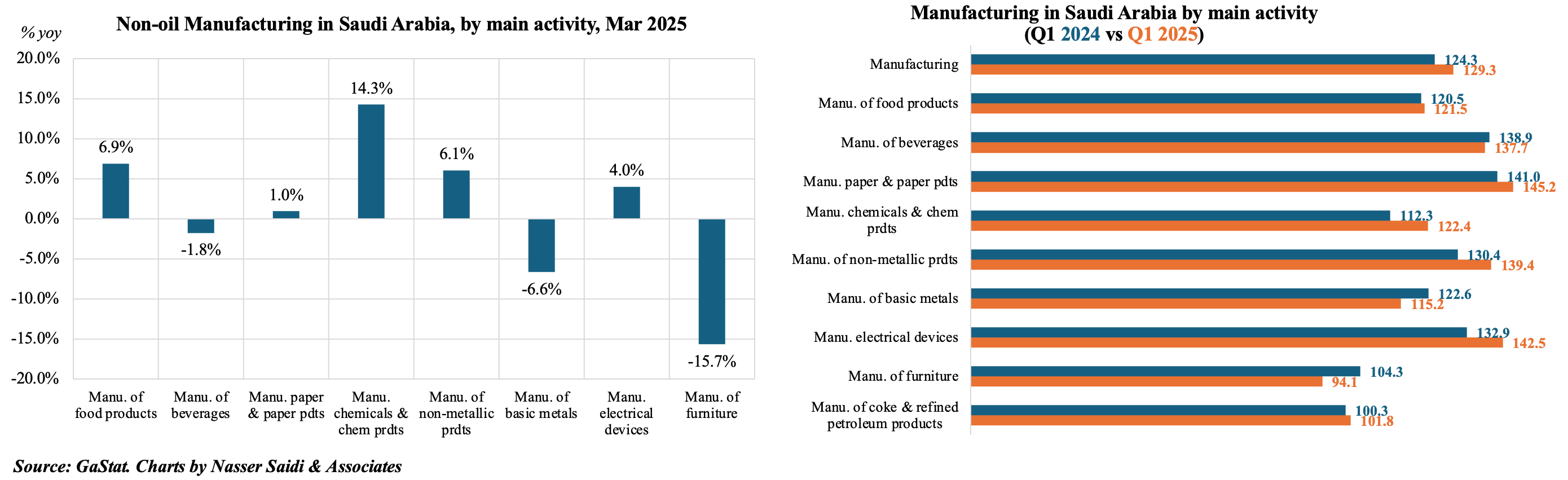 - Non-oil activities grew by 3.3% mom and 5.9% yoy in Mar 2025. Within manufacturing, the manufacture of chemicals & chemical products was the fastest growing (14.3%) followed by food products (6.9%).