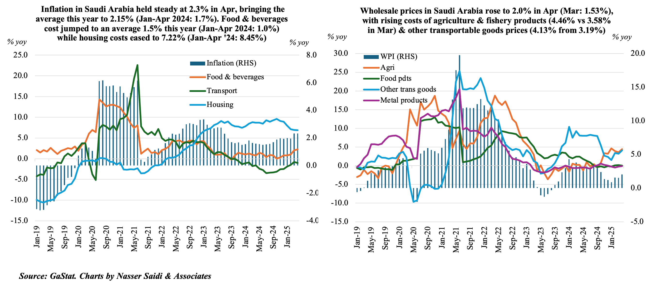 5. Consumer inflation remains muted in Saudi Arabia holding steady at 2.3% in Apr while producer price inflation inches up