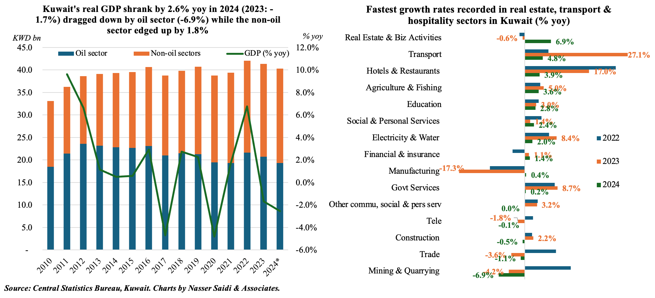 3. Kuwait’s GDP shrank by 2.6% yoy in 2024, dragged down by a plunge in oil sector activity and prices, with GDP falling by 0.7% in Q4