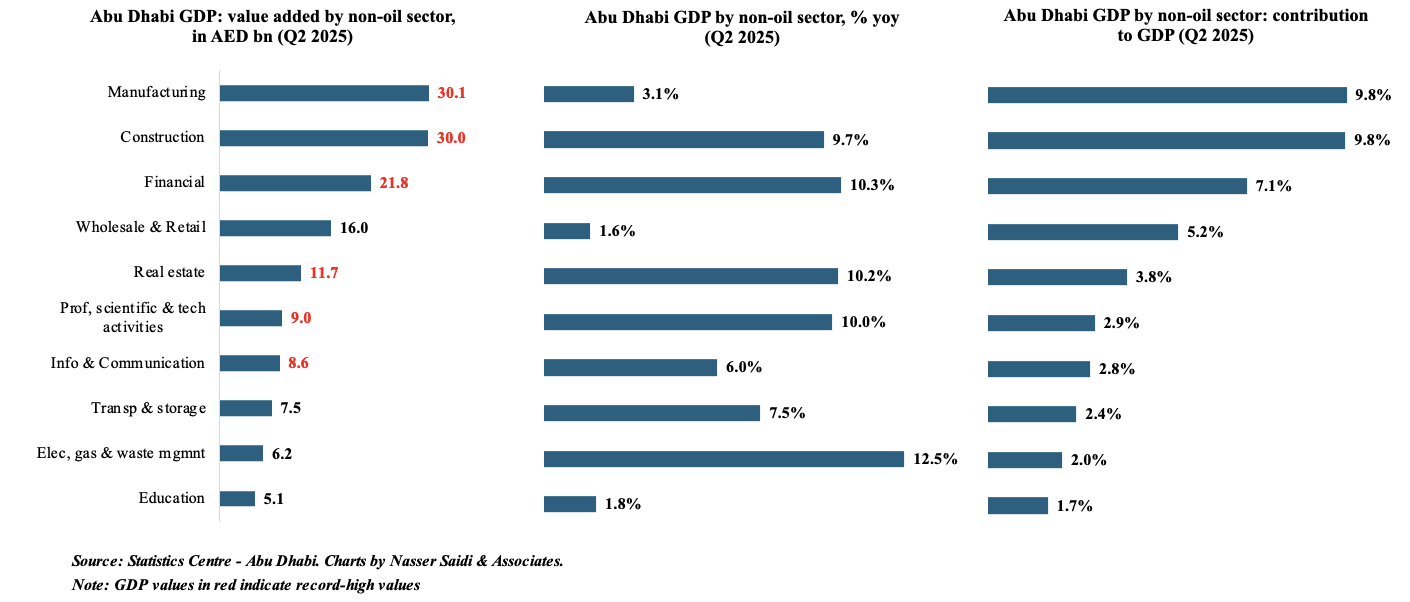 1. Abu Dhabi’s real GDP grew by 3.8% yoy in Q2 (Q1: 3.4%); non-oil GDP clocks in new record contribution of 56.8%