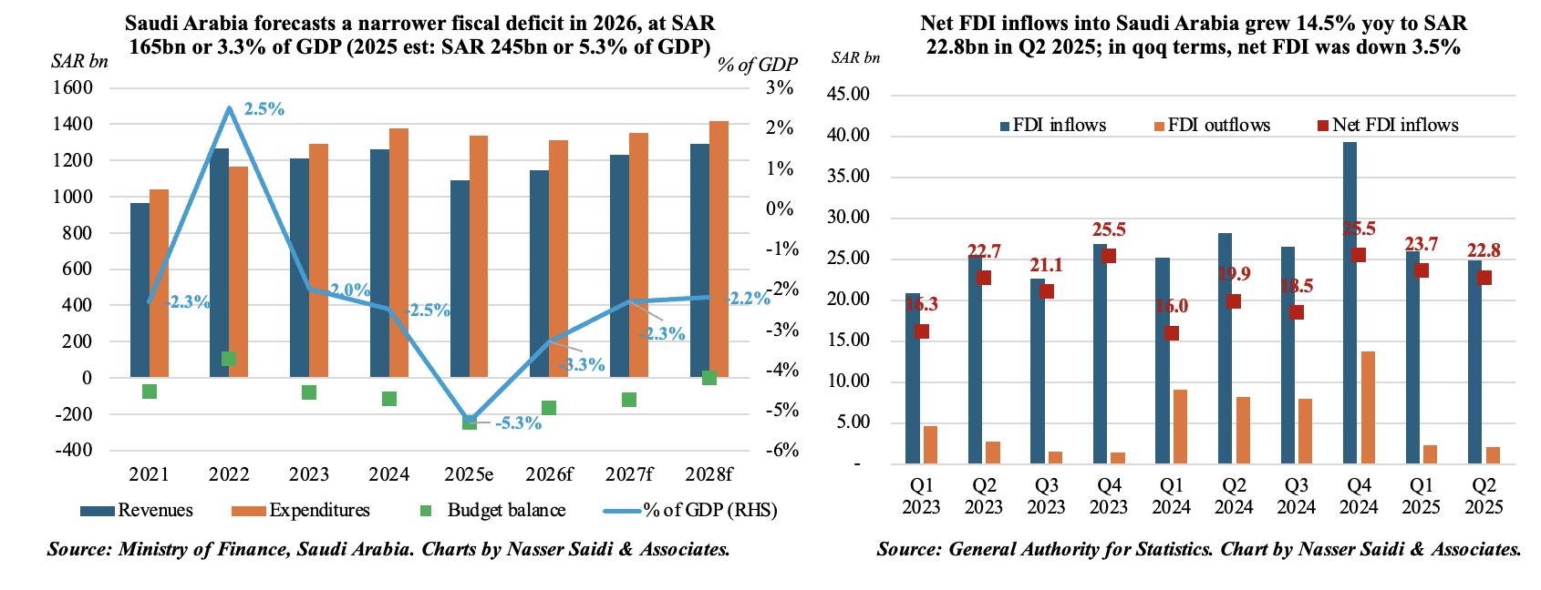 4. Saudi Arabia’s expansionary budget; net FDI inflows rises in H1 as outflows plunge