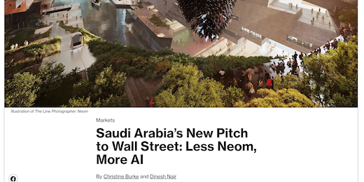 Aathira Prasad’s comments on Saudi Arabia’s pullback at Neom and what it means ahead of the Future Investment Initiative (FII) in the Bloomberg article titled “Saudi Arabia’s New Pitch to Wall Street: Less Neom, More AI“, published on 23 Oct 2025.