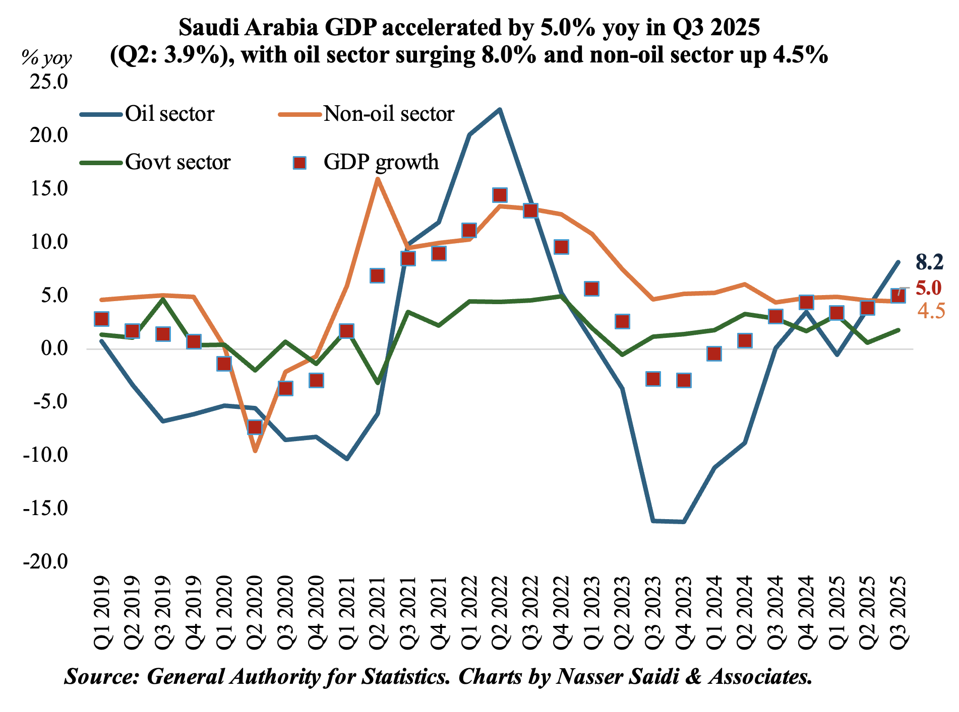 1. Saudi Arabia GDP accelerated by 5.0% yoy in Q3, driven by oil sector recovery