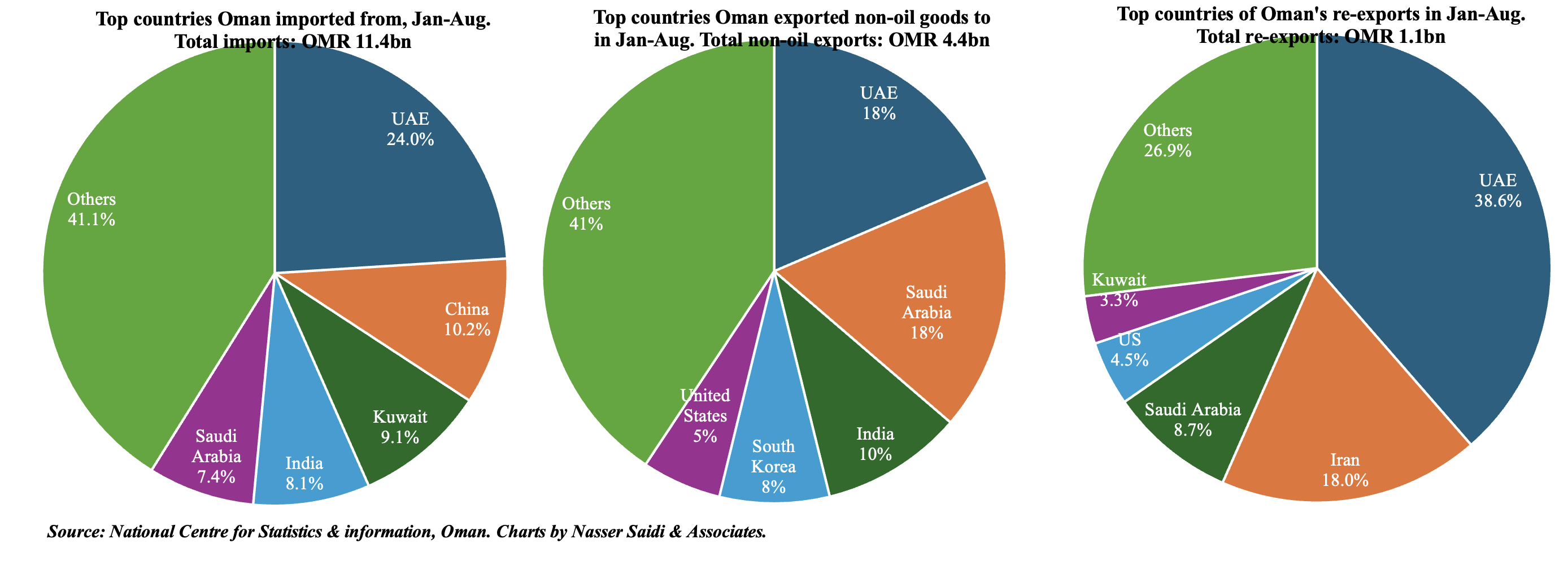 3. Oil & gas exports drag overall exports in Oman; non-oil and re-exports together accounted for 36% of total exports in Jan-Aug