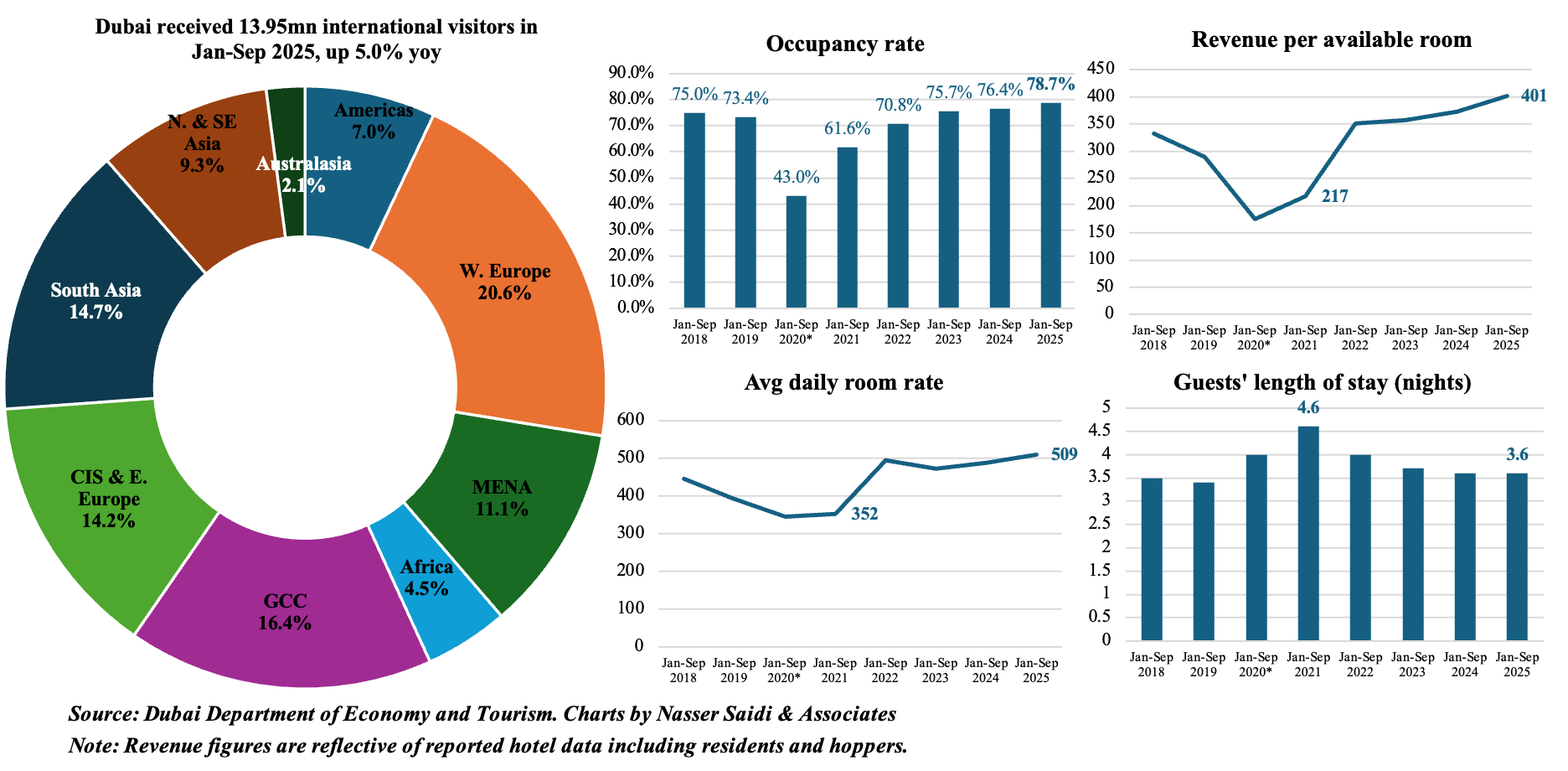 1. International visitors to Dubai rose 5.0% yoy to 13.95mn till end-Q3 2025