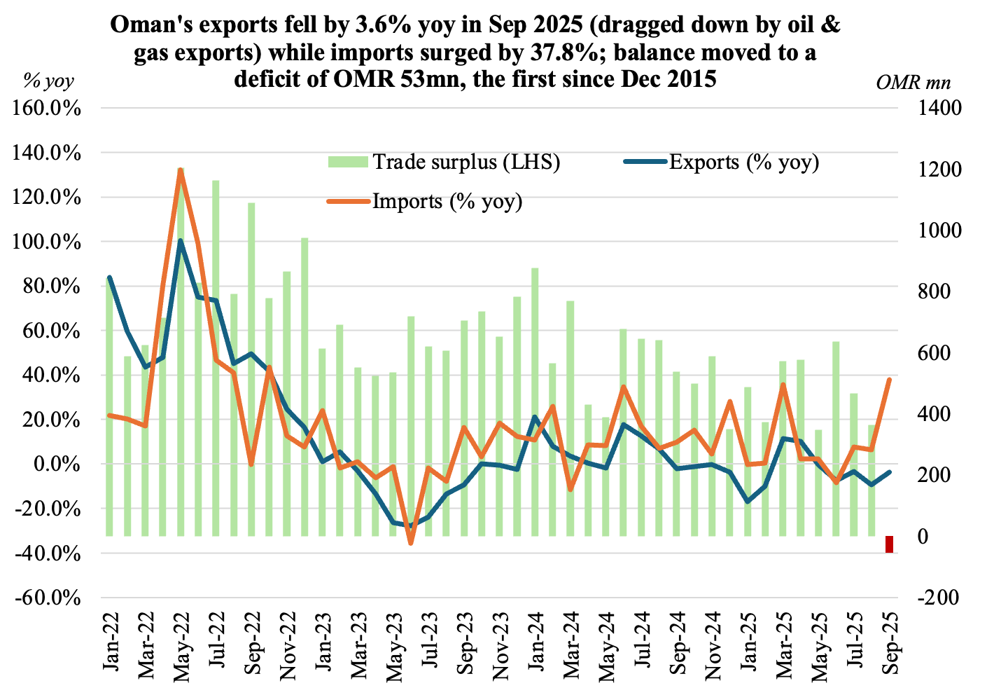 2. Oman posts a trade deficit of OMR 53mn in Sep 2025, the first since Dec 2015