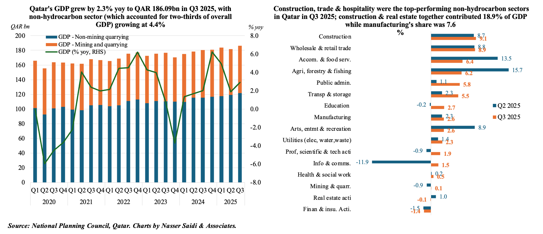 3. Qatar’s real GDP expanded by 2.9% yoy in Q3 2025, thanks to the 4.4% uptick in the non-hydrocarbon sector