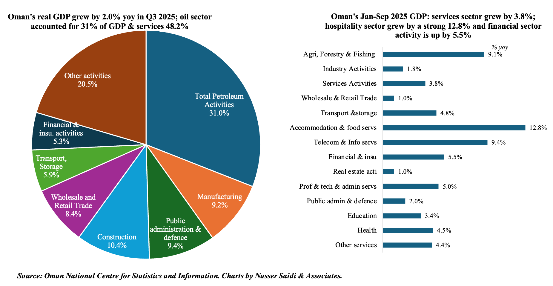 2. Oman’s real GDP expanded by 2.0% yoy in Q3 2025, and 2.2% in Jan-Sep, supported by services sector activity