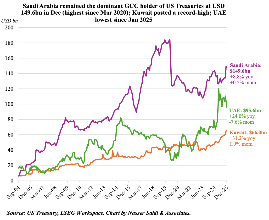 - From the GCC, Saudi Arabia, the UAE and Kuwait were among the top buyers last year; Kuwait’s holdings climbed to a record-high last year.