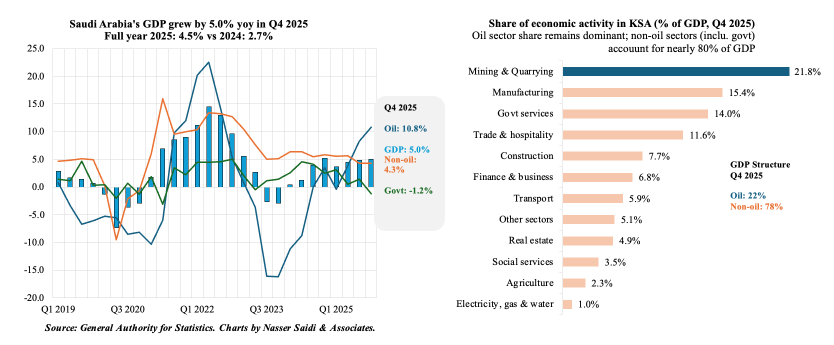 6. Saudi Arabia GDP grew by 5.0% yoy in Q4 ‘25, thanks to oil & non-oil growth