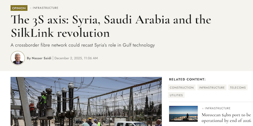 “The 3S axis: Syria, Saudi Arabia and the SilkLink revolution”, Op-ed in Arabian Gulf Business Insight (AGBI), 2 Dec 2025